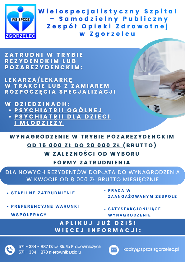 Oferta pracy – psychiatria ogólna, psychiatria dla dzieci i młodzieży